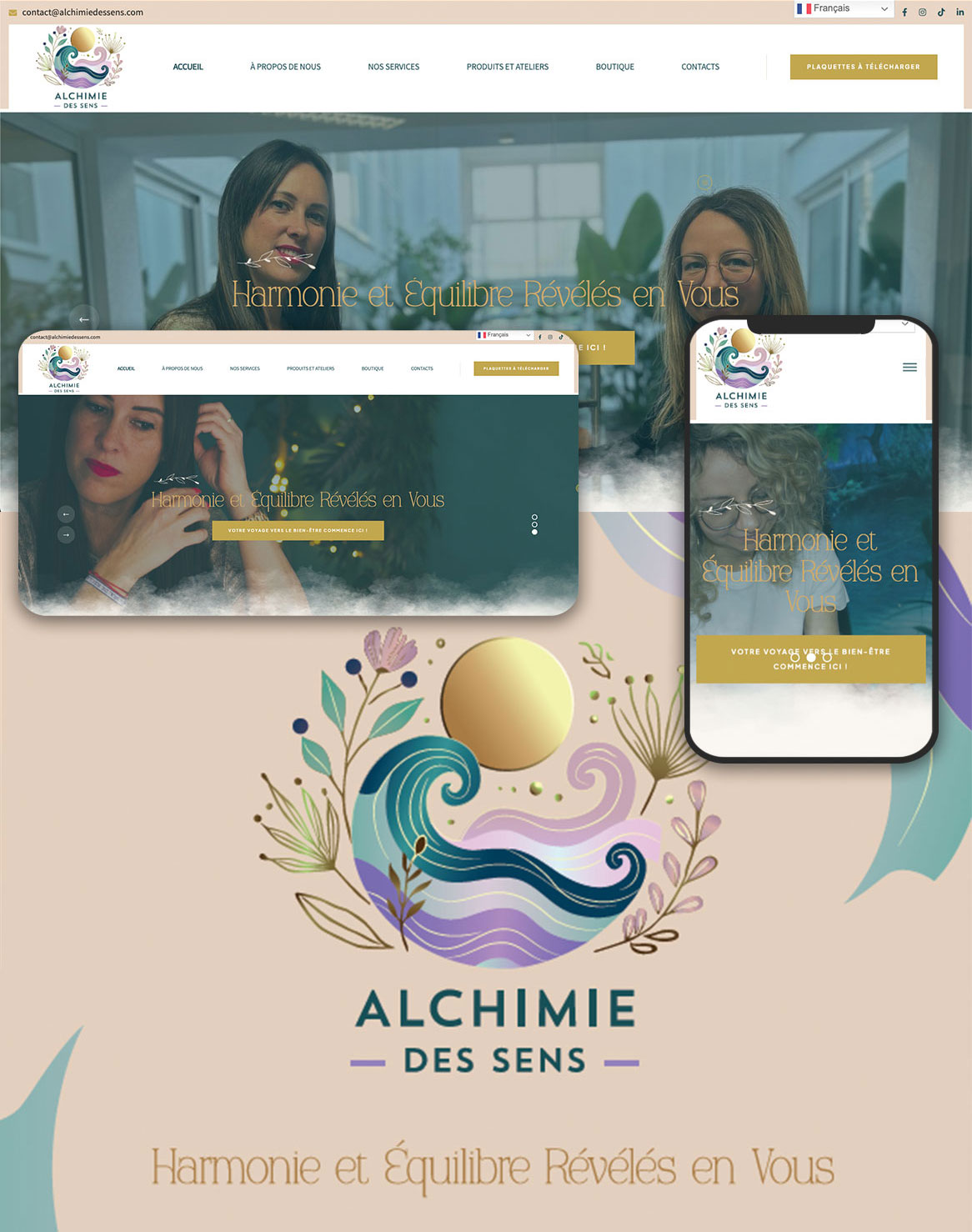 • Navigation intuitive : structure claire permettant aux visiteurs de trouver facilement les informations sur les soins, les ateliers et les produits.