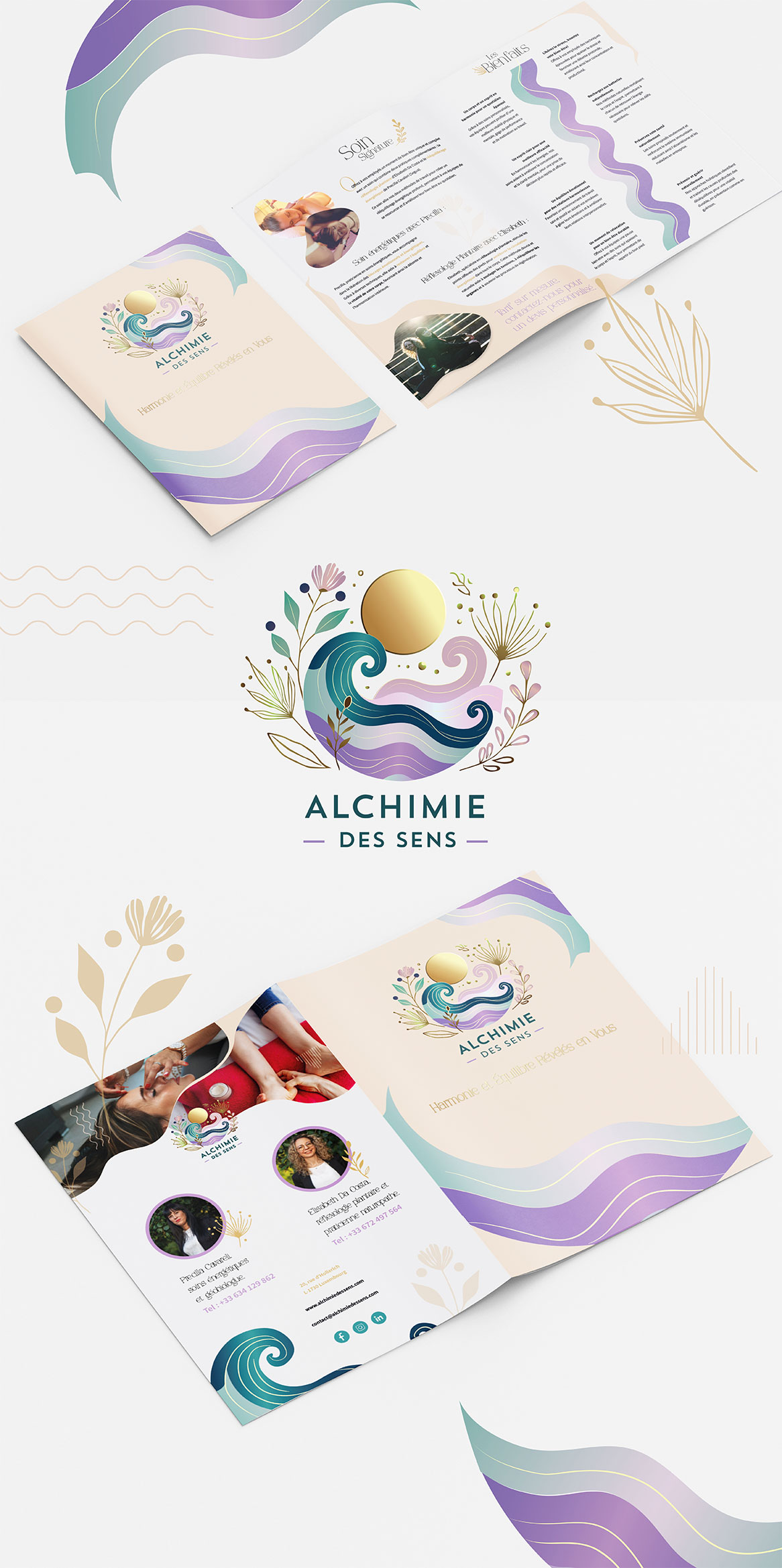 En complément du site web, j’ai développé une gamme de supports imprimés pour Alchimie des Sens, visant à renforcer leur communication visuelle et à promouvoir leurs services lors d’événements ou en cabinet.