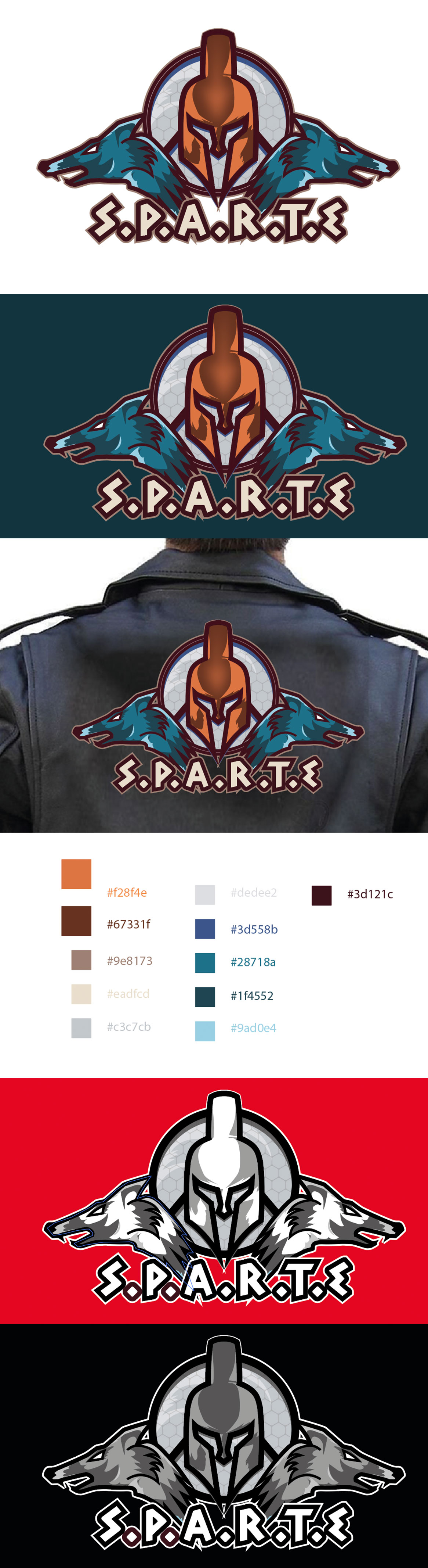 La typographie du nom S.P.A.R.T.E, stylisée et percutante, renforce l’impact du logo et souligne les valeurs de cohésion et de respect.